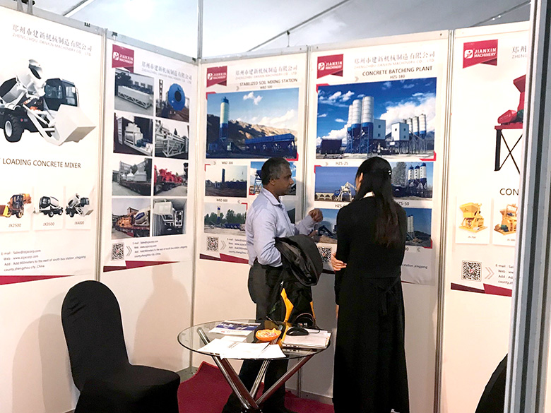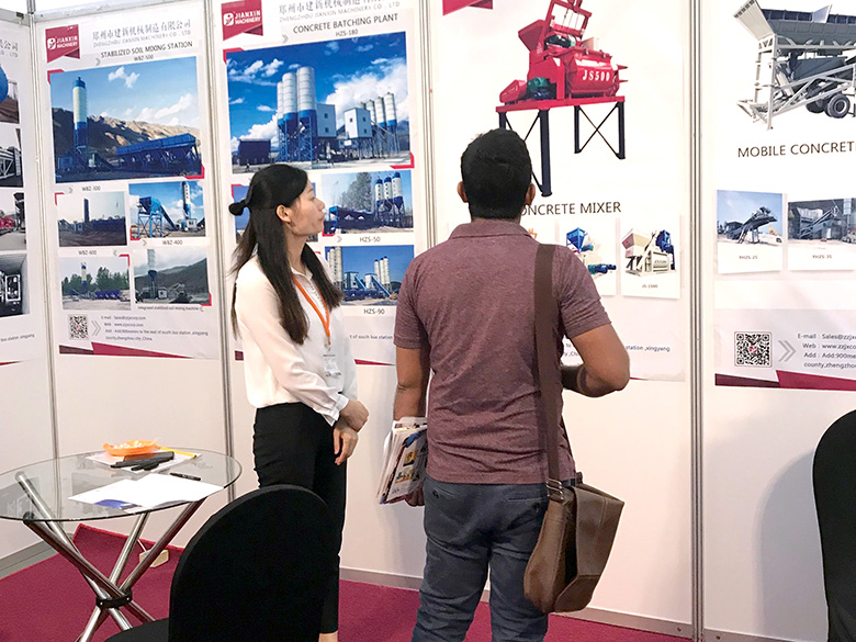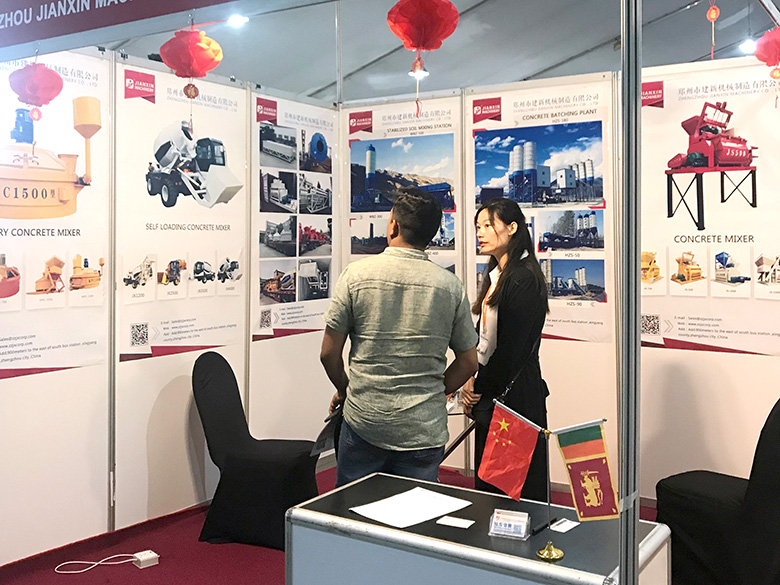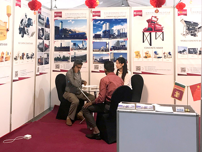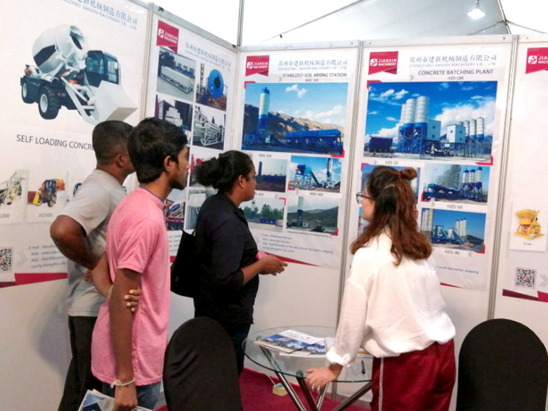 混凝土攪拌站、WBC系列穩定土拌合站等產品吸引了絡繹不絕的觀展者駐足洽談。接待人員不失時機地向來觀展的客戶介紹建新機械的技術優勢、產品特點、售后服務及銷售代理政策,其熱情的講解受到了廣大斯里蘭卡客戶和當地工程機械人士的關注,部分客戶當場展開了詳細的商談。